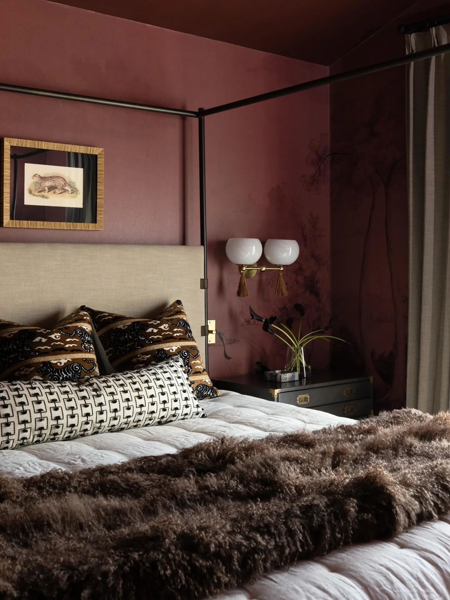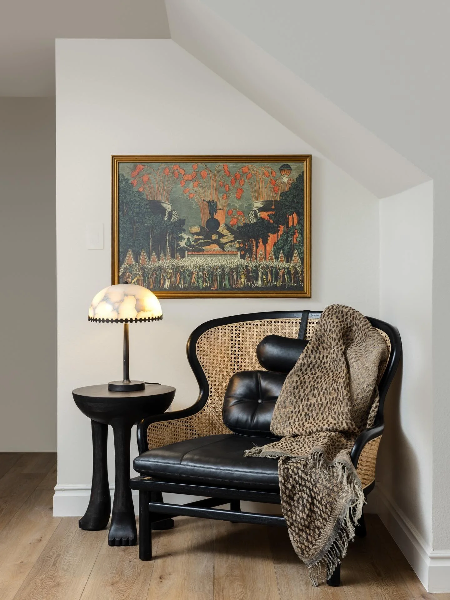Subtle blue accents throughout the living spaces introduce a cool balance, softening the palette while enriching the overall visual harmony. In the bedrooms and nursery, soothing greys and powdery blues blend seamlessly with layered textiles, tonal drapery, and serene artwork to create restful, nurturing environments.